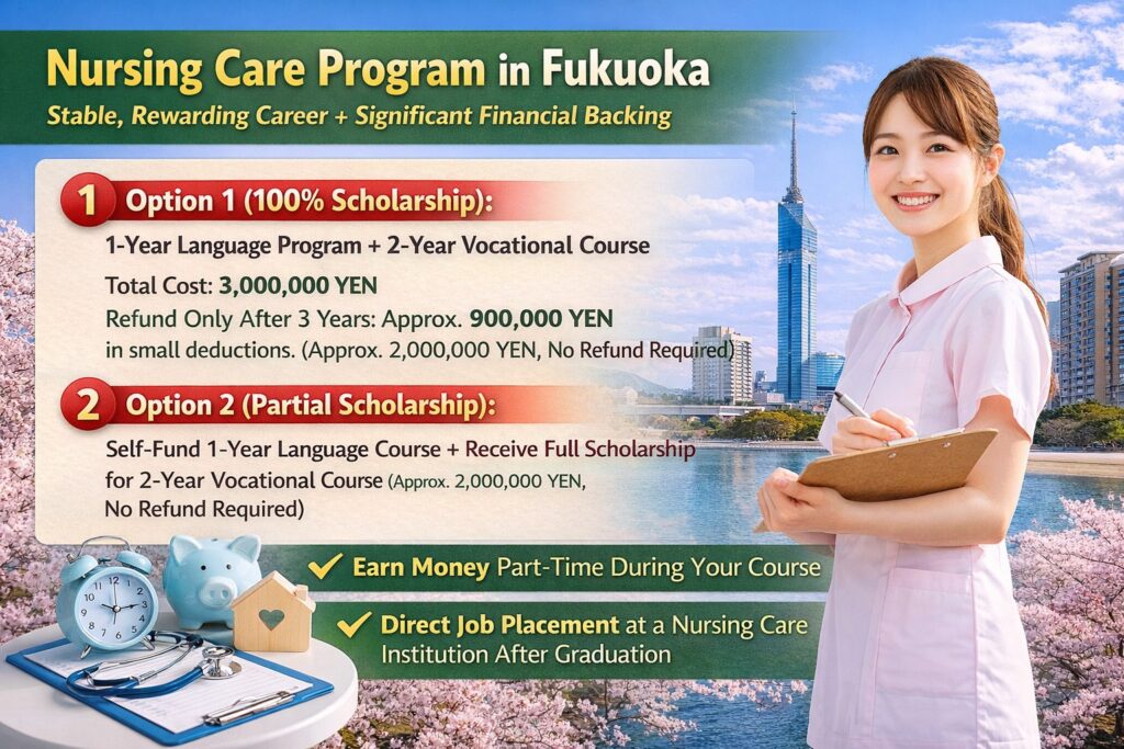 Our Nursing Care Program in Fukuoka is designed for students who want a stable, rewarding career with significant financial backing.