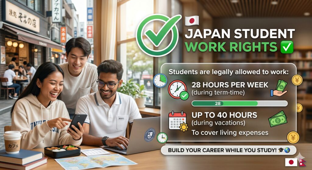 Students are legally allowed to work 28 hours per week (up to 40 hours during vacations) to cover living expenses.